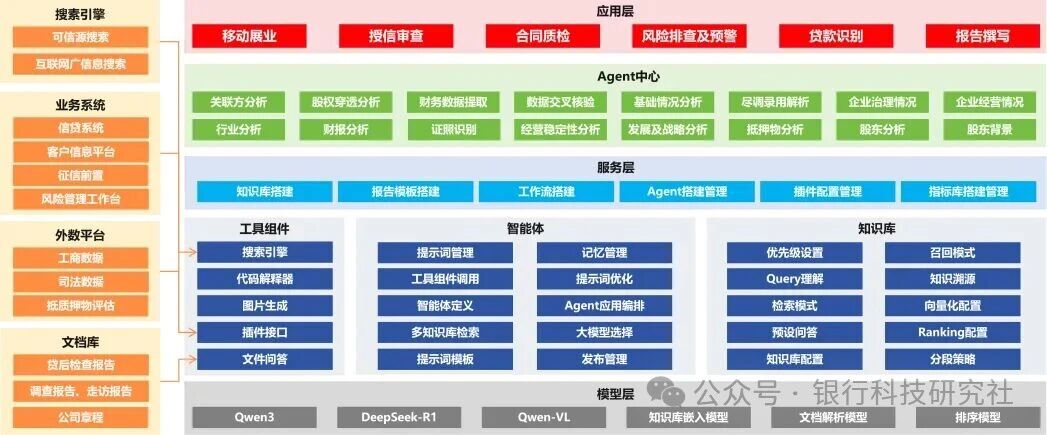 4. 大模型工程化落地范式创新:在2023年便开始率先自主构建了融合RAG检索增强、多智能体(Agent)工作流编排、系统深度集成的全流程自动化工程链路,逐渐成功将大模型能力规模化应用于信贷尽调、报告生成等高复杂度、长链条业务场景,获得中国人民银行认可,实现了效率的质的飞跃。